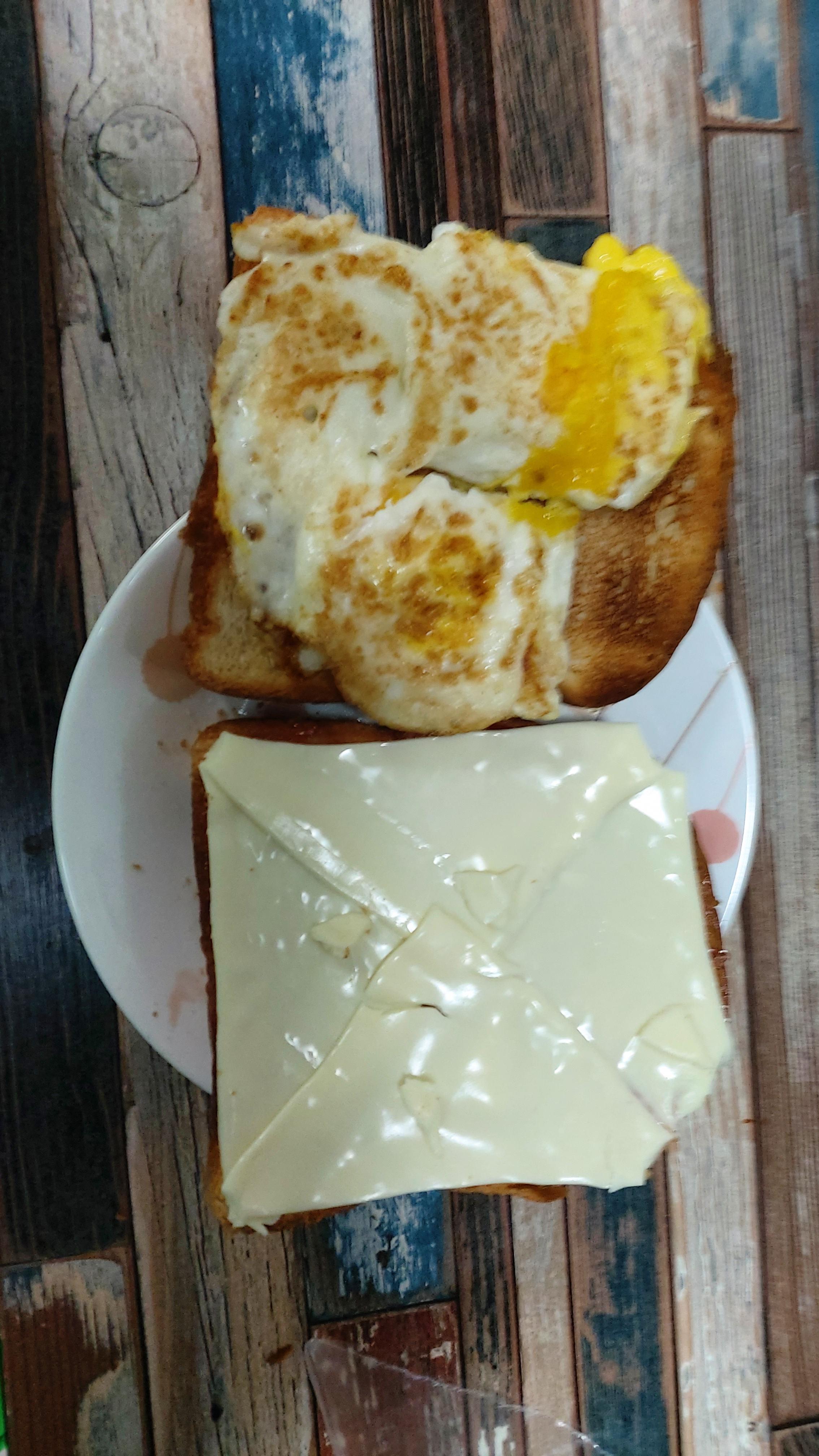 이제 계란을 식빵 한쪽에 올린다음